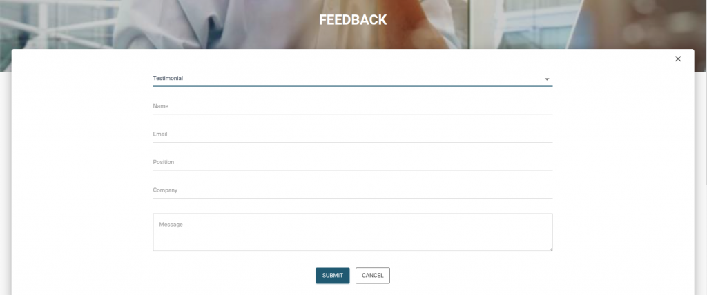 All fields on the form are required (Position and Company fields are required only with “Testimonial” topic).