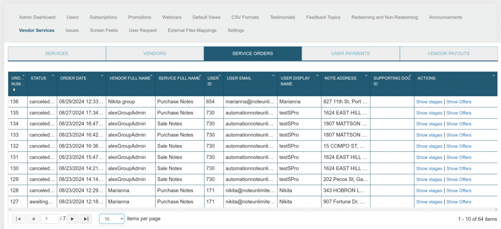• Status: The current status of the service order (e.g., canceled_by_user, completed, canceled_by_vendor).
