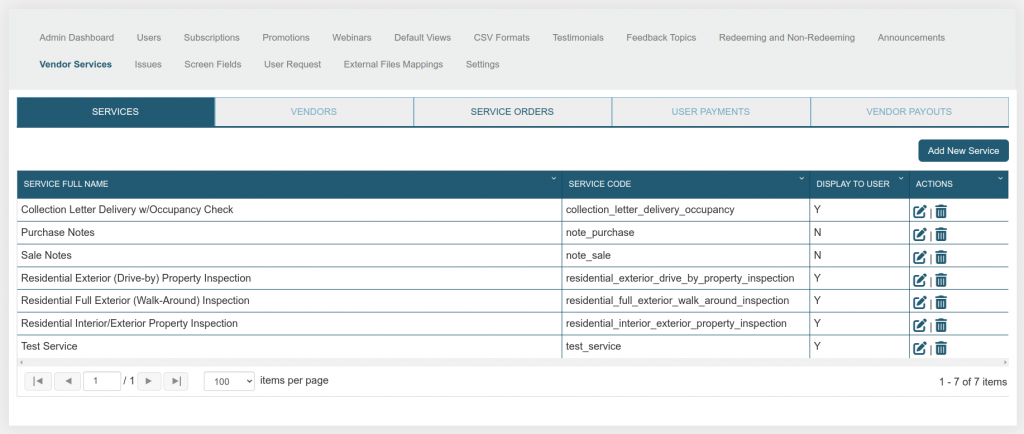 The administrator can add new service, edit, and delete existing ones.