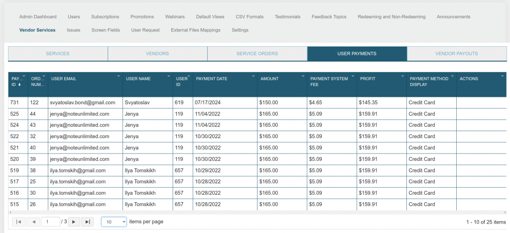 • User Email: The email address of the user who made the payment.